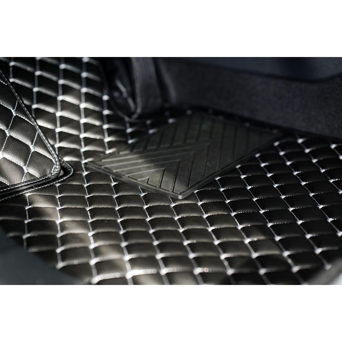 Bilmattor i konstläder QuiltyMats MG 3 från 2024 (Svart / röda sömmar)