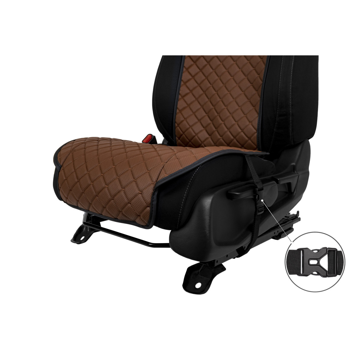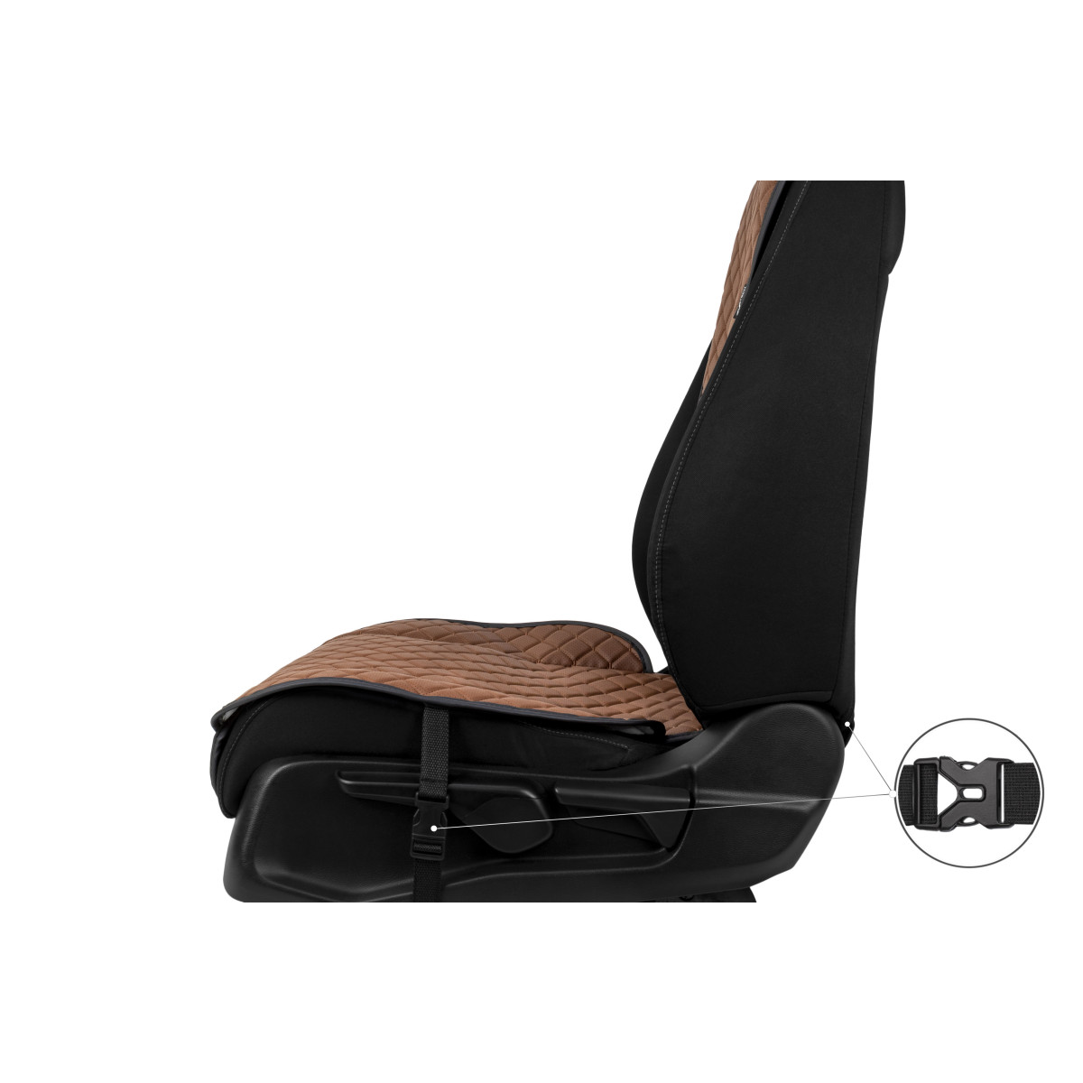 EVAtech ECO Standard Bilsätesskydd, 1 st - brun / svarta kanter / bruna sömmar