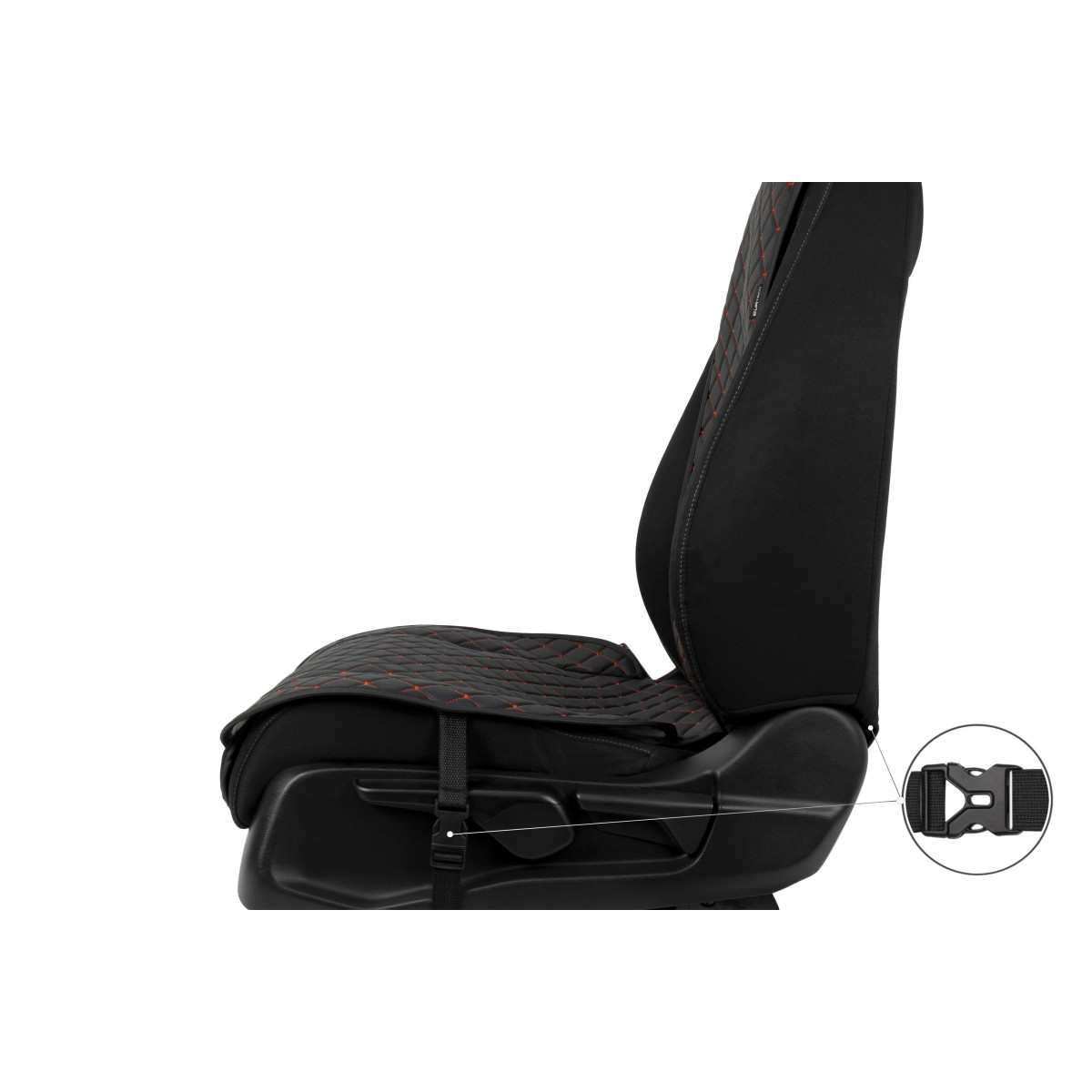 EVAtech ECO Standard Bilsätesskydd, 1 st - svart / svarta kanter / röda sömmar