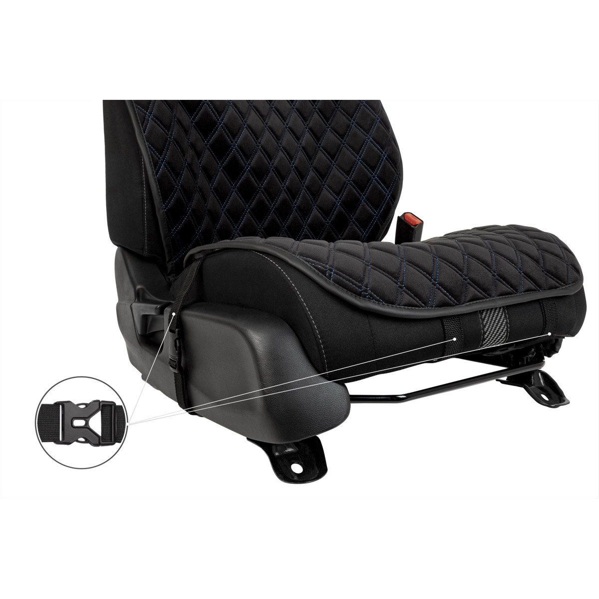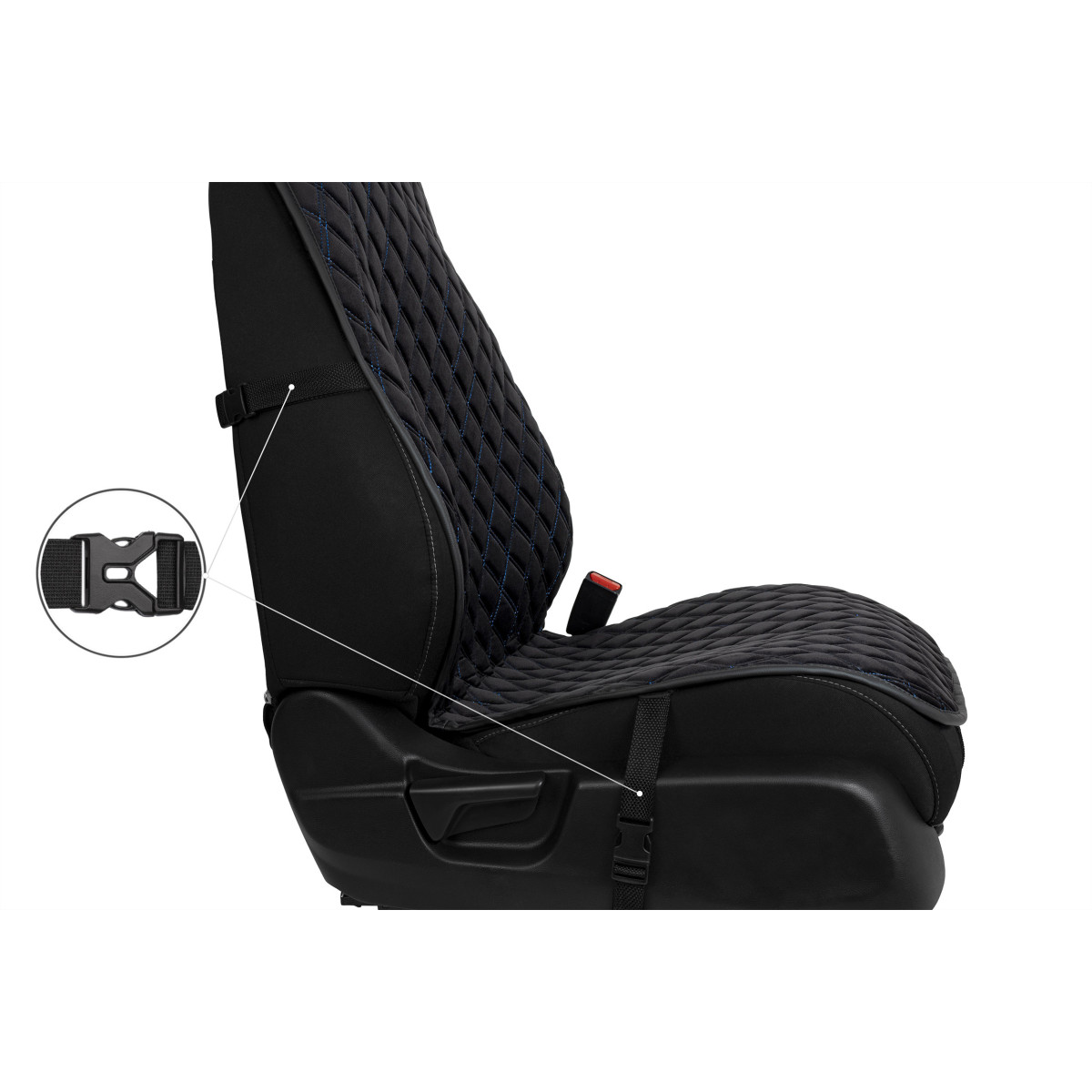 EVAtech PRO Bilsätesskydd, 2 st - svart / svarta kanter / blå sömmar