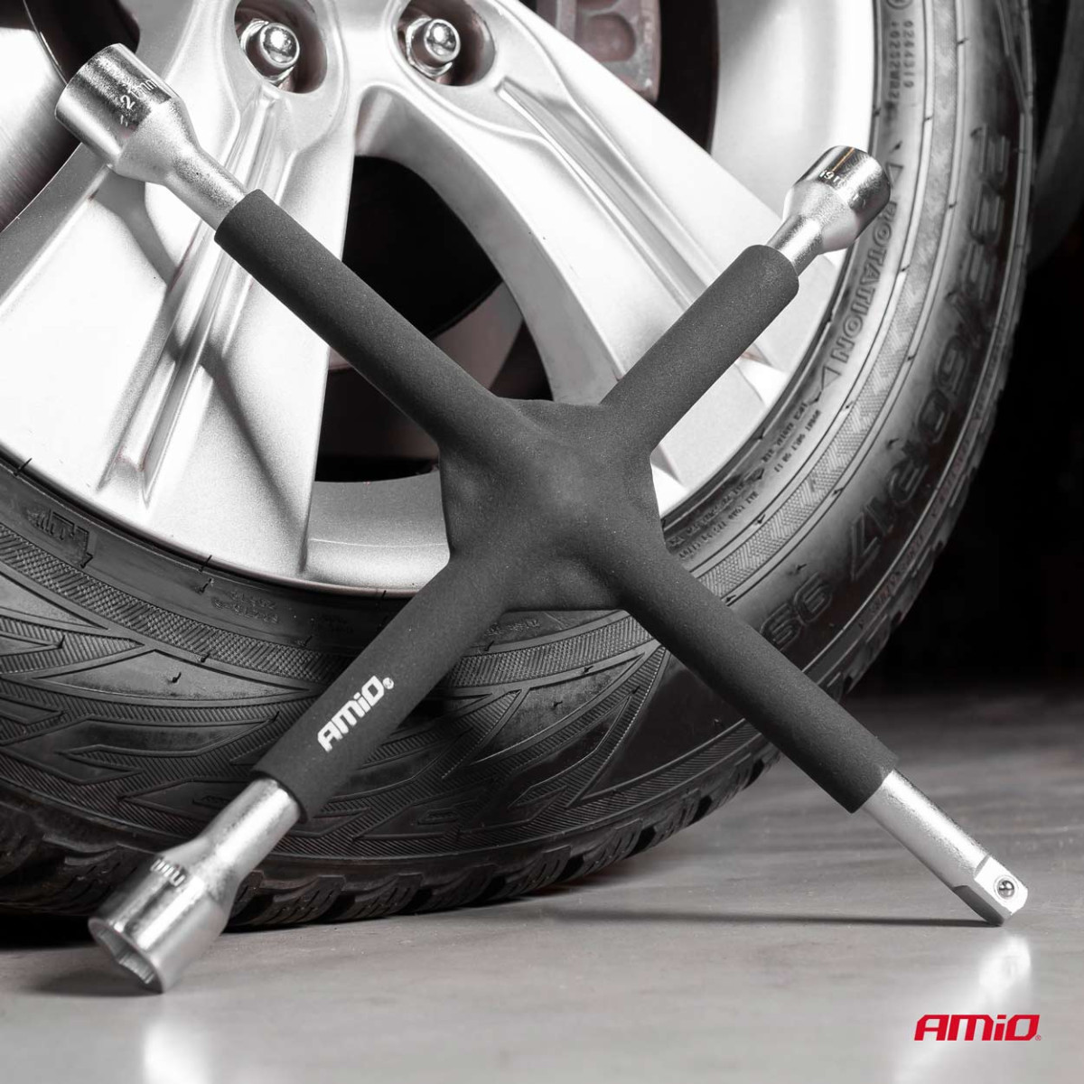 Korsformad hjulnyckel 17–19–21 mm, 1/2", gummerad, AMIO-02402