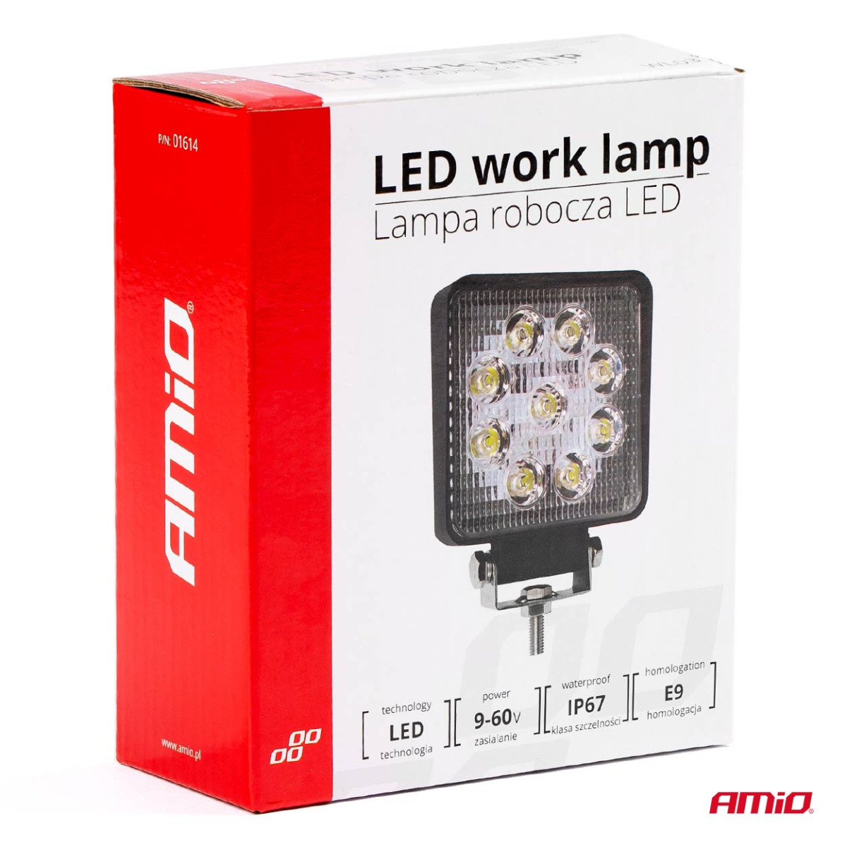 LED-arbetsstrålkastare är huvudsakligen avsedda för platser där intensiv belysning från 12- eller 24-V-batterier krävs som extra ljuskälla. Dessa produkter har ett mycket brett användningsområde, till exempel i terrängfordon, stadsjeepar, fyrhjulingar och UTV:er, räddningsfordon, jordbruksmaskiner, lastbilar, helikoptrar, båtar eller yachter etc. Tack vare användningen av LED-teknik förbrukar de förvånansvärt lite energi, så batteriet behöver inte laddas ofta. Arbetsstrålkastarna fungerar perfekt under de svåraste förhållandena, och deras lilla storlek och dammtäta höljesdesign med IP67-skyddsklass kommer att tillfredsställa även de mest krävande kunderna. Lampan är utrustad med 9 LED-dioder, med en total effekt på 27 W, som lyser med ett starkt vitt ljus.