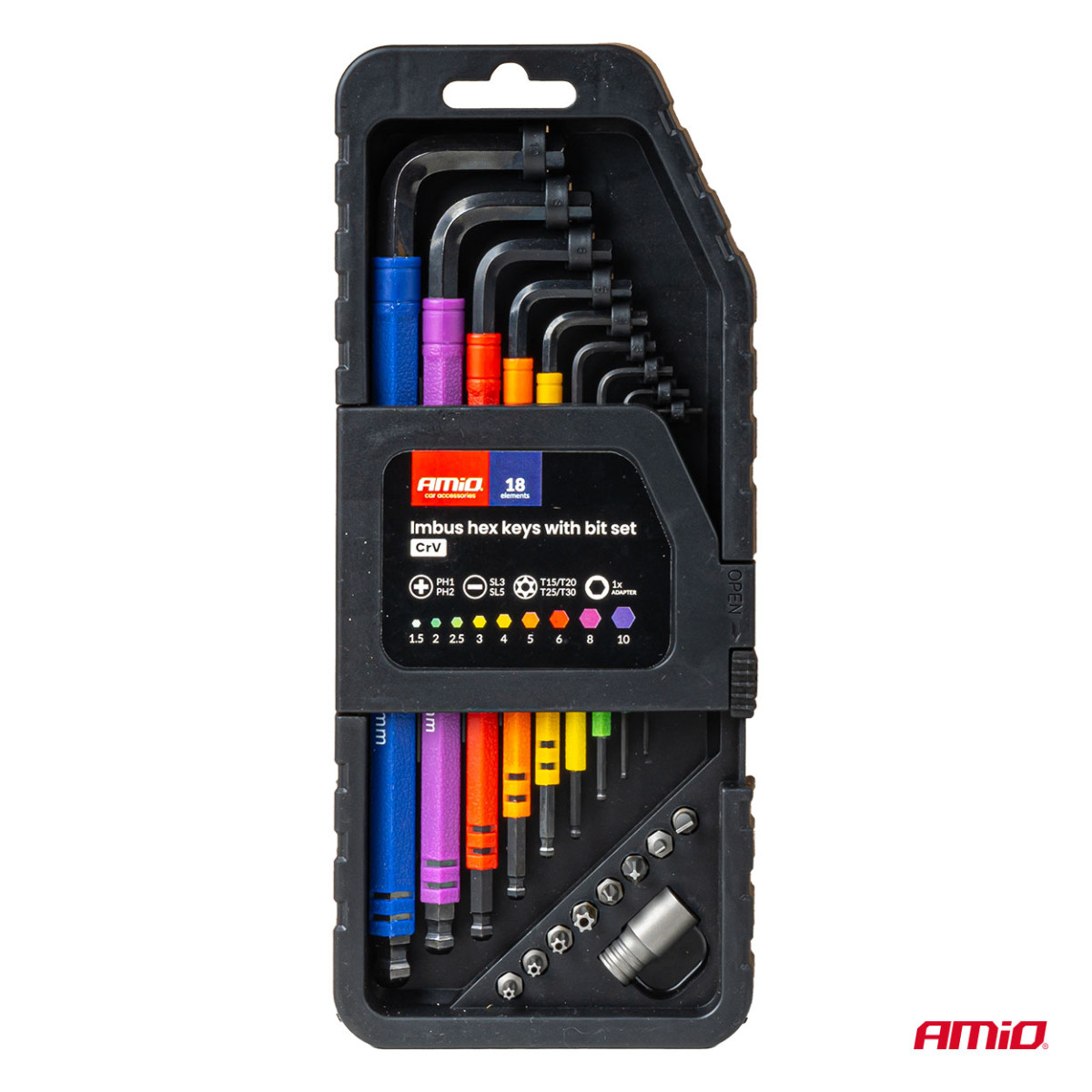 Sexkantsnycklar (Insexnycklar) med kula och bitssats, 18 delar, CR-V AMIO-04787