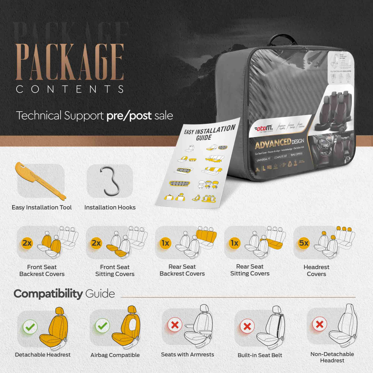 Alla material är laminerade polyuretanskum, vilket förhindrar att överdragen glider på sätena. Överdragen täcker sätena helt, så de skyddar dem perfekt från smuts, är hållbara och lätta att rengöra. Moderna designer uppdaterar bilens interiör och förbättrar estetiken.