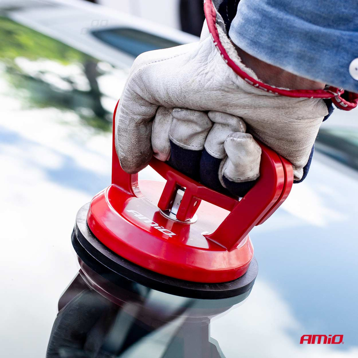 Högkvalitativ hållare/suganordning, från det välkända märket AMiO, avsedd för att transportera plana och släta ytor, såsom glas, fönster, bilfönster, plåt, laminat etc., med en vikt upp till 40 kg.