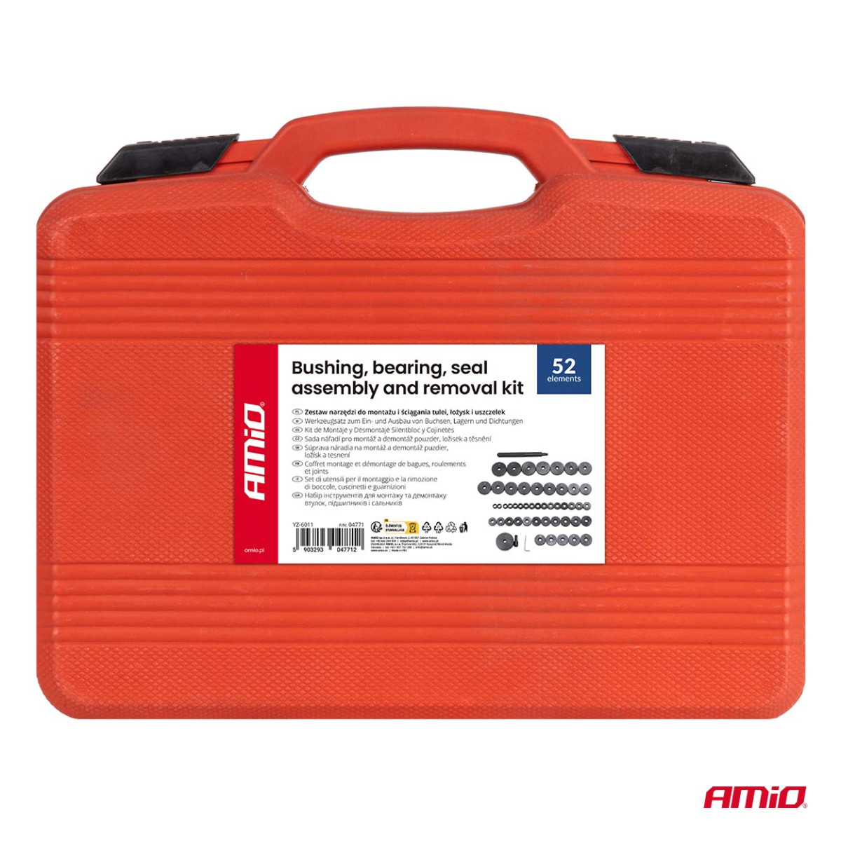 Verktygssats för montering och demontering av bussningar, lager och tätningar, 52 delar. AMIO-04771